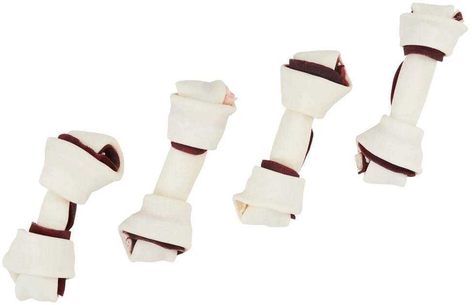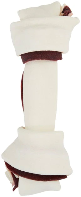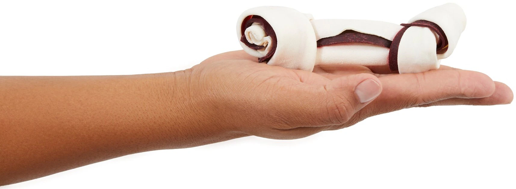 Bones & Chews Chicken Flavor Rawhide Bone Dog Chews provide two pup-preferred favorites in one chompable chew: 100% real beef hide for their chewing pleasure and irresistible chicken flavor too. They’re high protein to satisfy their taste buds and designed for long-lasting chewability your dog craves. Chewing not only helps provide some relief from doggie boredom, stress and anxiety, it also helps support their healthy teeth and gums through all that gnawing action. And these treats are made for it! Plus, they’re free of artificial flavors, and they’re grain-free with no added corn, wheat or soy ingredients, so you can trust these treats are not just tasty but trustworthy too!