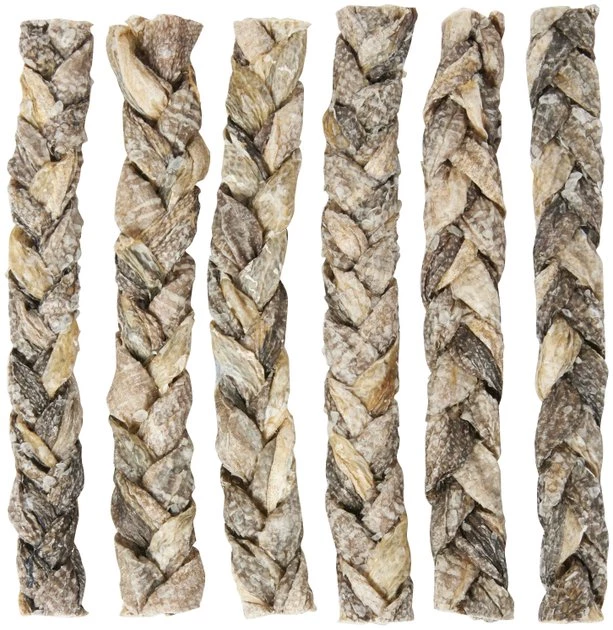 Bones & Chews 8” Braided Cod Skin Dog Treats are a unique twist on your typical chewing treat. They’re made from only one, single ingredient: satisfying, crunchy dried Cod skins. And they’re grain-free! These unique treats are also chock full of omega-3 fatty acids found in wild fish to help support your fur friend’s skin and coat health.