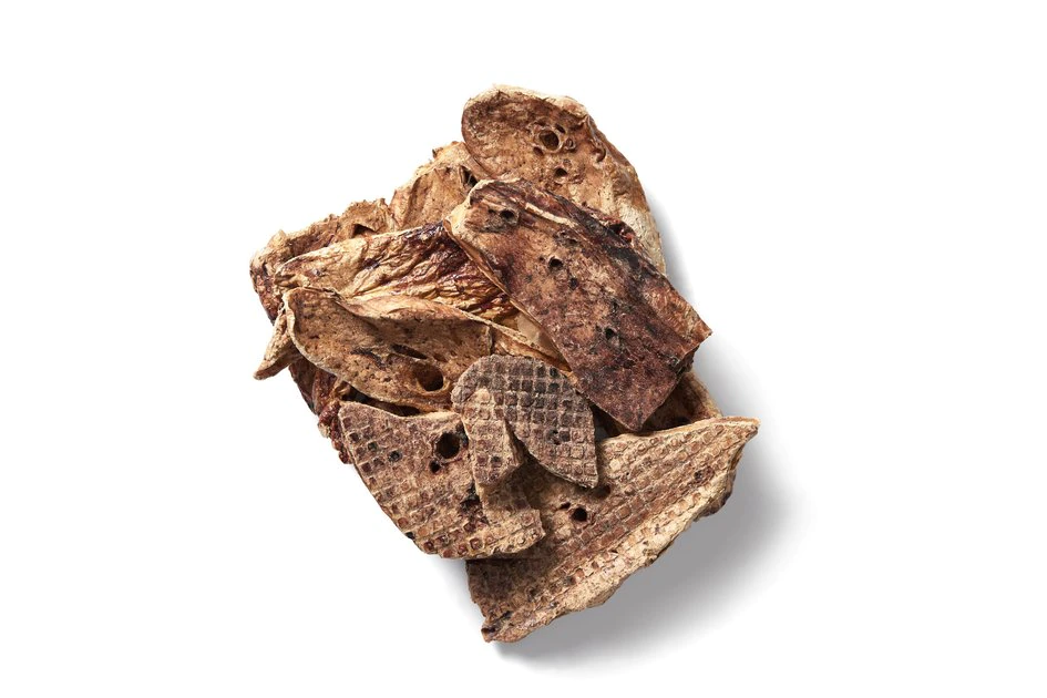 These crunchy, high-protein treats are made with 100% dehydrated lamb lung and no other ingredients. That means there’s no artificial flavors, colors or preservatives, and never any wheat, corn or soy. The dehydration process removes moisture and nothing else, so dogs get a snack that packs all that meaty flavor they love. With no artificial ingredients, you can feel good about treating your pup anytime they’re craving a meaty bite. Since they’re made with a single animal protein source, they’re great for dogs with sensitivities too.