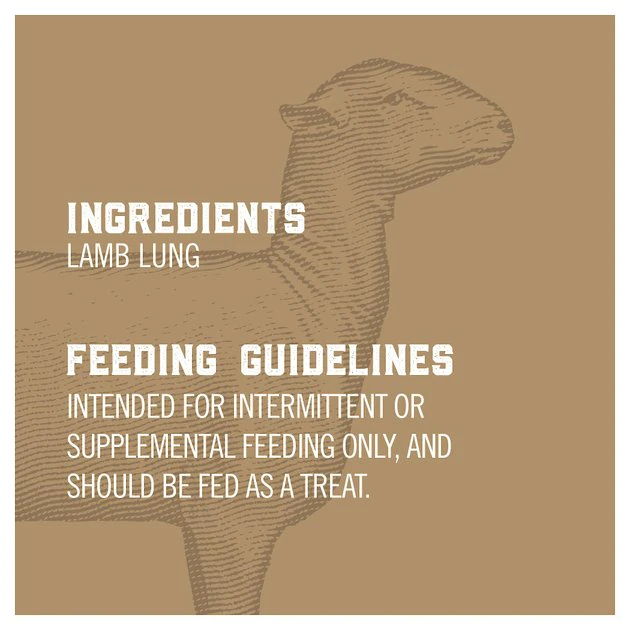 - Just one ingredient—100% dehydrated lamb lung—with no artificial flavors, colors or preservatives, and no corn, wheat or soy.