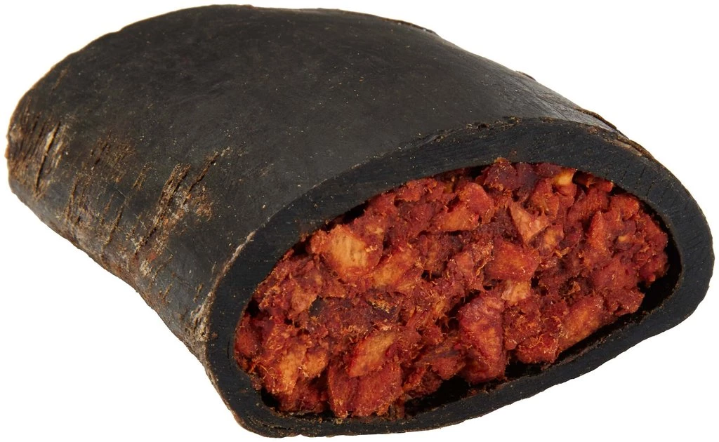 - Two-in-one dog treat with a water buffalo horn to gnaw on and a soft filling on the inside.