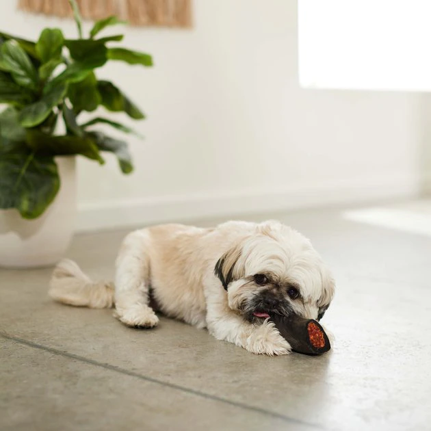 Give your pup a treat that packs the best of both worlds when it comes to chewing and snacking. These stuffed water buffalo horns provide the chewing factor dogs crave on the outside, and a delicious bacon and cheese-flavored filling on the inside. They’ll stay busy licking up the tasty goodness within, and then chewing away on the horn. Plus, all that chewing does some good, too—while your dog gnaws away at these chews, they’ll be scrubbing away plaque and tartar and supporting their overall oral health.