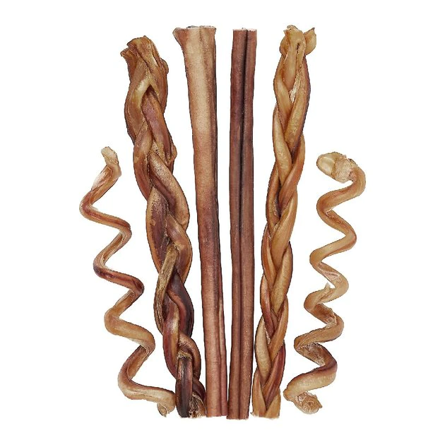 Looking for your top dog’s favorite new bully stick? This mouthwatering variety pack lets your pup try out three kinds! It comes with regular bully sticks, braided bully sticks and curly bully sticks for a long-lasting chewing experience. Your dog can choose their go-to for gnawing, but they may just love them all! Made of 100% digestible protein, they’re a great alternative to rawhide and the unique shapes and chewy texture help clean teeth. They’re made with zero additives, chemicals or preservatives.
