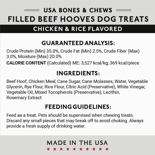 It’s a chew. It’s a snack. It’s both! These long-lasting treats give your pup the best of both worlds. On the outside, there’s a hoof that provides the chewing factor dogs crave, and on the inside, there’s a delicious chicken and rice-flavored filling they can’t resist. Just pass your pup one of these crave-worthy treats to keep them occupied for hours. They’ll gnaw and lick to their furry heart’s content!