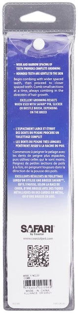This comb is an excellent all around grooming comb. The wide and narrow spacing of the teeth provide complete grooming. The long teeth penetrate to the root of the hair. Excellent grooming results when used with Safari pin, slicker or bristle brush depending on breed.