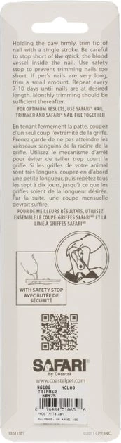 The Safari Professional nail trimmer is made from the finest quality Stainless Steel which will give a long-lasting, sharp cutting edge. Nail trimming should be a regular part of your pet’s grooming. It is important to your pet’s well-being to keep the nails properly trimmed.